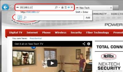 To begin, we will want to use a Internet enabled device with a web browser. (A computer or laptop will work best for this but a tablet or phone connected to Wi-Fi will work as well.) Now we will want to open up your web browser (Ex: Internet Explorer) and clear out the address bar at the top. Now please type in 192.168.1.1 and press Enter.