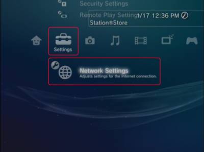 To start we will need to be at the main home screen of the Playstation3. Then move the menu to the left until you reach Settings. From here you will to move to the bottom until you have selected Network Settings.