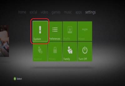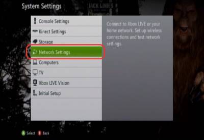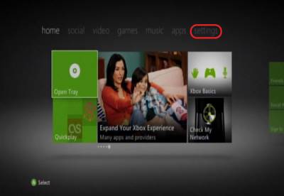 This is a general guide on how to configure a Xbox 360 for PPPoE. Different versions of the OS of the Xbox 360 can change and may be different compared to this guide. DISCLAIMER: These guides are intended for anyone to use. However, technical support is only provided to customers who have Nex-Tech services. To start we will need to turn on the Xbox, then go to the Settings heading, from there you will need to use the Left Stick to move Down until you reach System, and then press A.