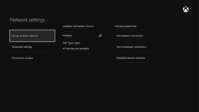 Select the network you wish to connect to, and if it requires a password enter that information in. Once you have successfully connected to that network your Xbox should take you back to the Network settings menu, and show a connection, as well as the current NAT status and what services are currently available on your Xbox.