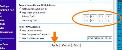 3. Type in OpenDNS addresses in Primary DNS and Secondary DNS fields