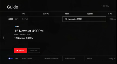 To create a recording you will first need to go into the guide. You can access that by pressing your menu button.